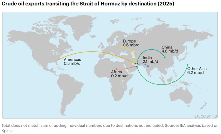 80% of the oil products travelling through the Straits of Hormuz are heading to Asia? So while the often quoted statistic of 20-25% of world trade is not inaccurate, the impacts around the globe vary significantly. Of course, New Zealand gets most of its refined products from South Korea, Singapore and Japan, who rely heavily on passage through the Straits for their crude.