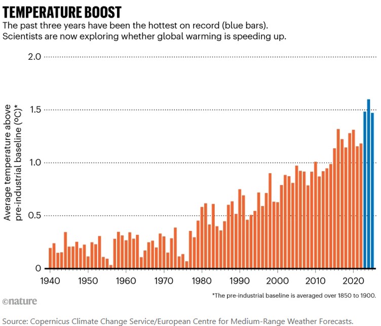 That’s the conclusion of new research from the Potsdam Institute for Climate Impact Research. Global mean surface temperatures have been increasing at around 0.2C per decade since the 1970s but have been tracking at around 0.35C per decade since 2015, a statistically significant increase. Many attribute the acceleration to tighter air pollution controls in the shipping sector, which have reduced the shielding effect of seeded clouds.