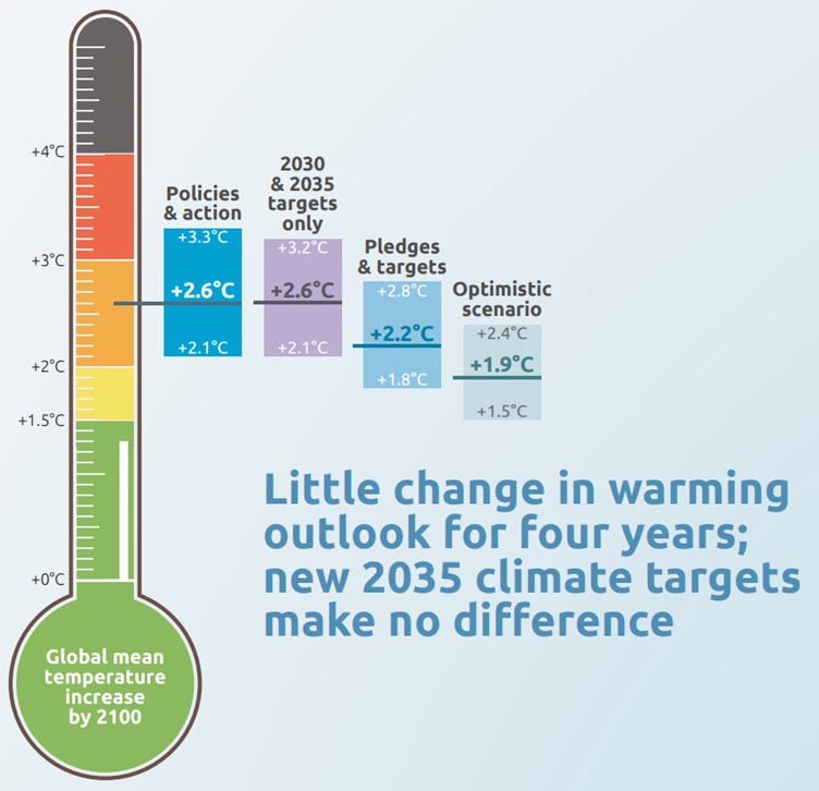 That’s the conclusion of Climate Action Tracker to the latest round of NDC announcements that emerged ahead of COP30. Its prediction of warming by 2100 remains at 2.6C despite the new round of commitments. It claims almost none of the key (40) nations it analyses has updated 2030 targets and those that have adjusted 2035 targets have done so at an inconsequential level.